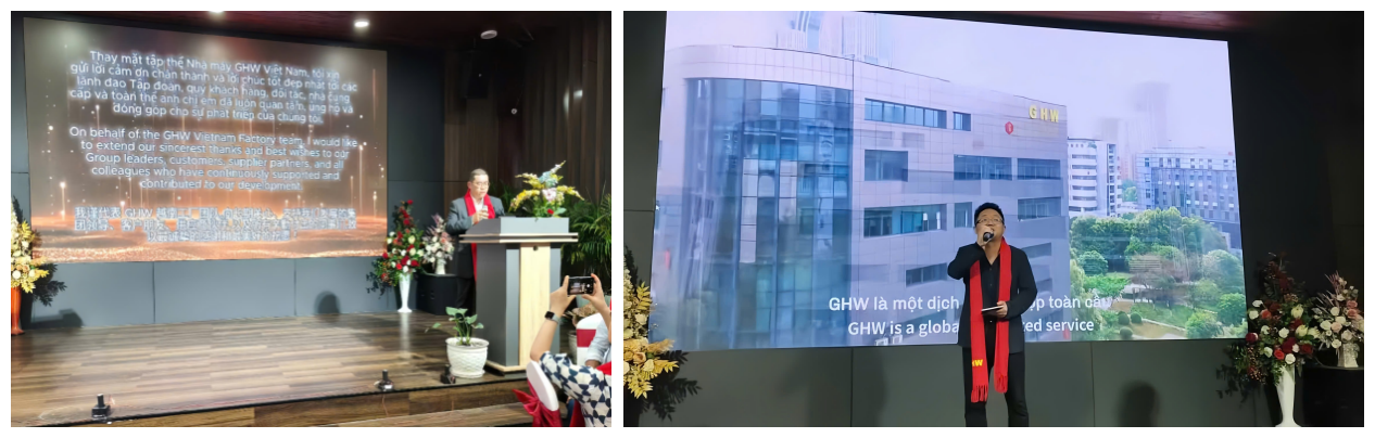 Par la suite, M. ZHAO Meng, Directeur Général de la région Vietnam de GHW, a partagé ses vœux pour la nouvelle année. Il a souligné qu'avec l'expansion continue et la montée en puissance des bases de production nationales et internationales en 2026, le Groupe entre dans une nouvelle phase de développement caractérisée par un potentiel illimité et une multiplication des opportunités. Ses perspectives optimistes pour un développement stable et une prospérité durable du Groupe GHW ont été saluées par les applaudissements nourris de toute l'assistance.
